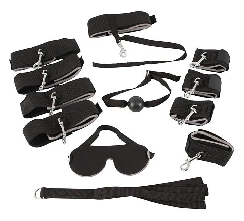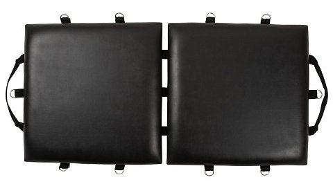 Переносная доска для связывания с плечевым ремнем. Для всех пар, которые хотят наслаждаться своими фетиш-фантазиями где угодно. В комплекте: складная доска с ремнем для переноски и набором для фиксации и ограничения, 4 манжеты для рук и ног, 1 шейный ремень с карабиновыми крючками, маска для глаз, кляп-шарик, ремни для фиксации. Длина стола в собранном виде – 60 см., ширина – 60 см.