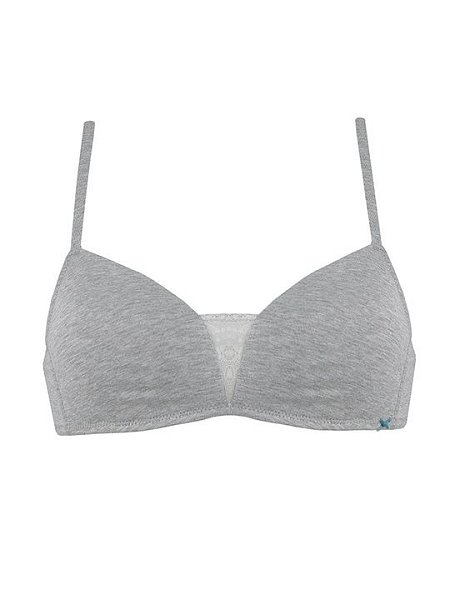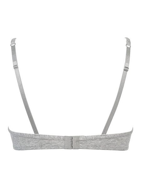Бюстгальтер-триангул с формованными чашками без пуш-ап, без косточек. Бочок усилен вертикальными, гибкими пластинами. Бретели несъемные, регулируемые. Застежка в два ряда на три позиции. Выполнен из эластичного, мягкого хлопка.