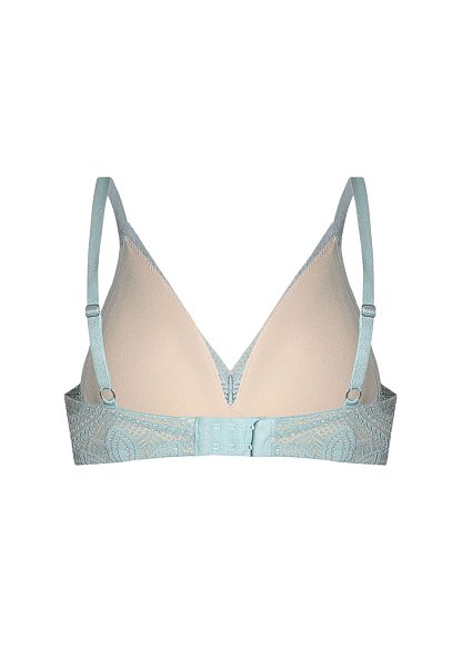 Бюстгальтер Julietta Super push up выполнен с формованными поролоновыми чашками телесного цвета без косточек, с дополнительными боковыми поддержками, внешняя сторона покрыта кружевом, спинка из кружева продублирована телесной сеткой. Бретельки не отстёгиваются, регулируются по длине, фурнитура металлическая некрашеная. На спине застёжка на удлинитель.