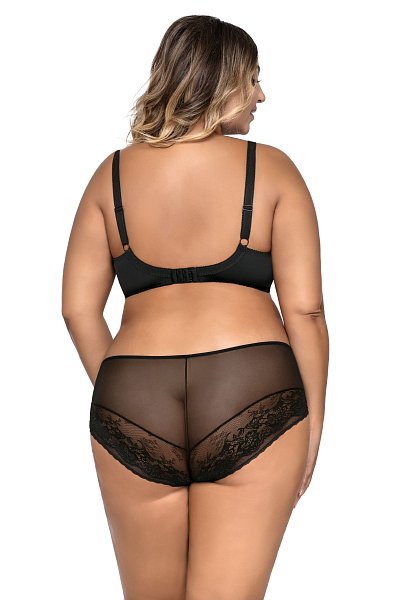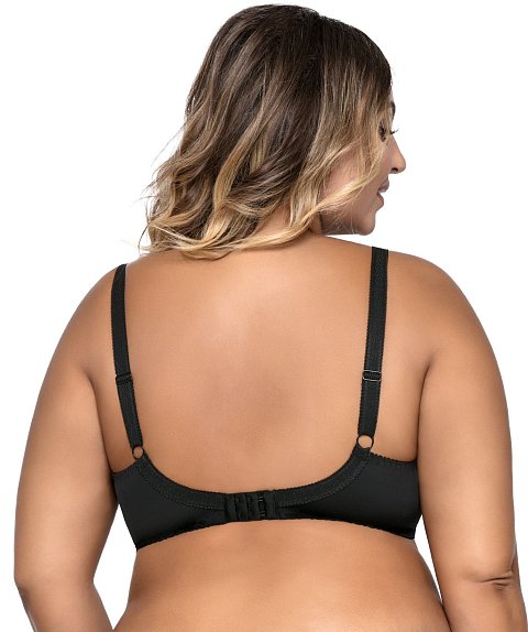 Бюстгальтер 1824 M Maxi выполнен на косточках, чашки мягкие, шитые из сетки телесного цвета и чёрного кружева, бретельки не отстёгиваются, регулируются по длине, в зоне декольте несъёмные декоративные бретели. На спине застёжка на удлинитель, количество крючков в ряду застёжки увеличивается пропорционально размеру бюстгальтера. У бюстгальтеров/купальных лифов AVA довольно тугой пояс, который адаптируется под тело после нескольких дней носки или одной-двух стирок. Рекомендуем использовать удлинитель пояса бюстгальтера на первое время либо выбирать следующий за «своим» размер, с поясом длиннее.