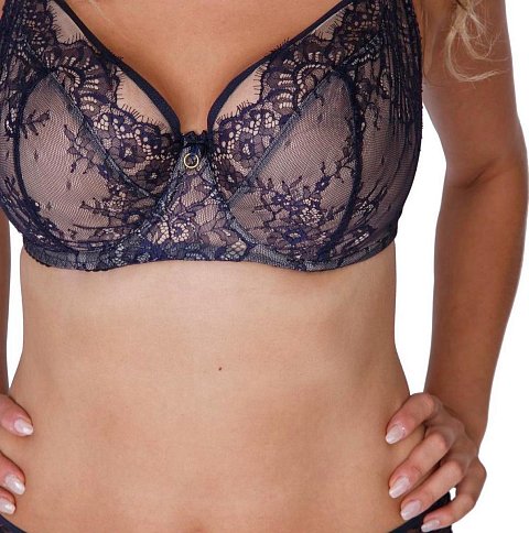 Отзывы о Темно-синий бюстгальтер с мягкой чашкой +size из кружева с «ресничками»