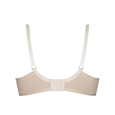 Бюстгальтер Madonna U выполнен на косточках, с дополнительными боковыми поддержками, чашки шитые, на тонком поролоне цвета экрю, со съёмными пуш-ап вкладышами, внутренняя сторона проложена хлопковым трикотажем, внешняя сторона из кружева. Бретельки не отстёгиваются, регулируются по длине. Спинка из двух слоев сетки цвета экрю. На спине застёжка на удлинитель, количество крючков в ряду застёжки, увеличивается пропорционально размеру бюстгальтера.