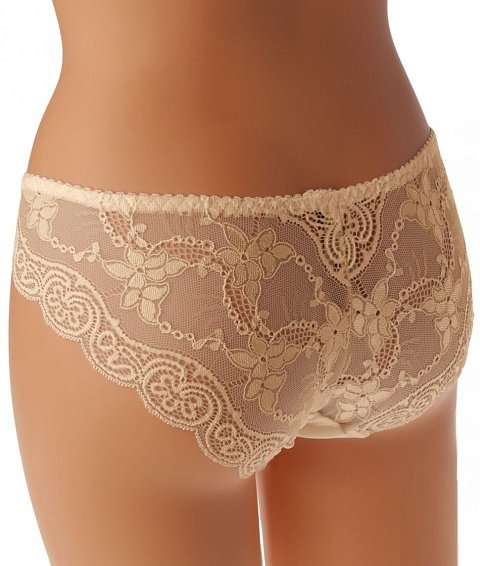 Оригинальные кружевные трусики классического стиля. Передняя часть - сочетание кружева и гладкого упругого материала, задняя часть – кружево. Пояс и края изделия на мягкой бельевой резинке. Уплотнены в зоне промежности хлопковой вставкой. Внимание: европейские размеры! Для определения российского размера необходимо прибавить 6!