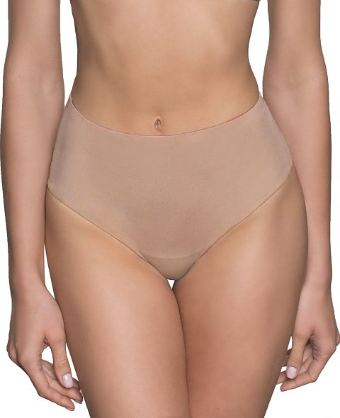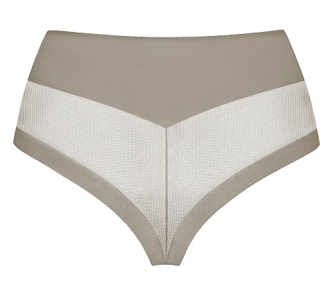 Трусы-бразилиана с высокой линией талии. Передняя деталь дублирована эластичной сеткой, легкий моделирующий эффект, скрытая резинка по ножке и талии. Высота бочка 12 см. Выполнены из микрофибры и сетки.