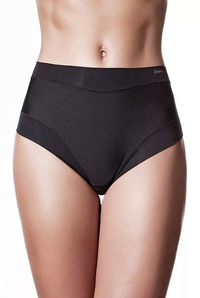 Трусики-слип с завышенной линией талии выполнены из ультрамягкой микрофибры спереди и сетки с бесшовным краем сзади, что делает их совершенно не заметными под одеждой. Высота бочка 12 см. Пояс и линия открытия ноги спереди обработаны мягкой окантовкой. Имеют анатомическую посадку за счет сборки по заднему шву. Ластовица выполнена из уникального хлопкового материала.
